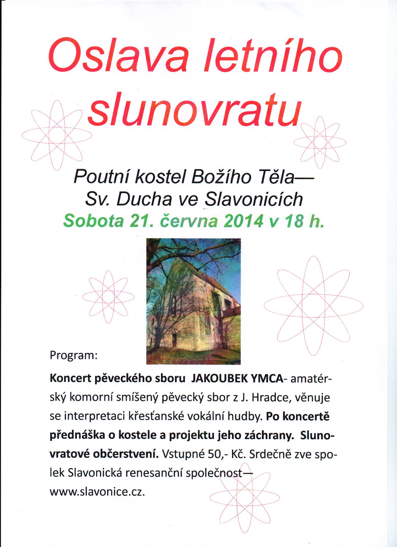 | Oslava letního slunovratu – koncert sboru v kostele U Ducha. Zpívat bude sbor Zanoty z J.Hradce, |