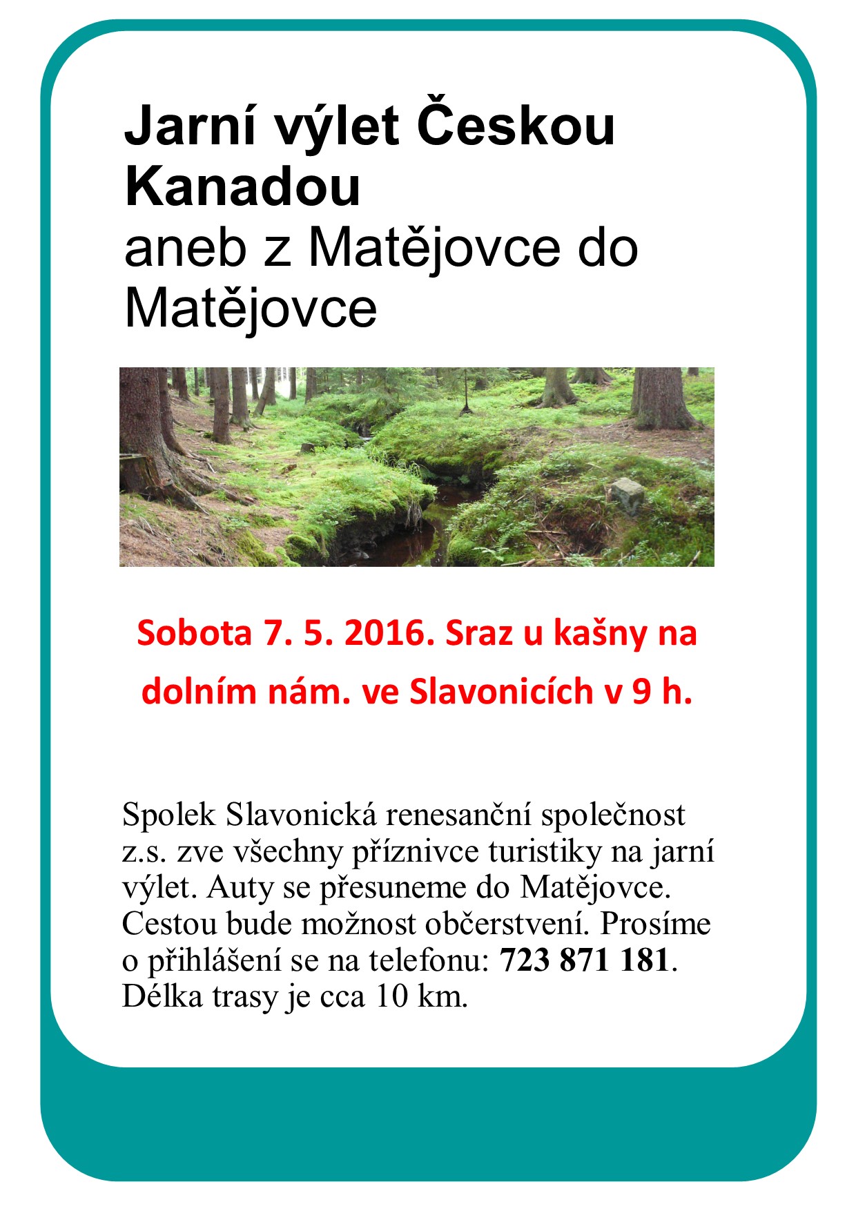 Plakát na 7. 5. 2016 - jarní výlet: Z Matějovce do Matějovce