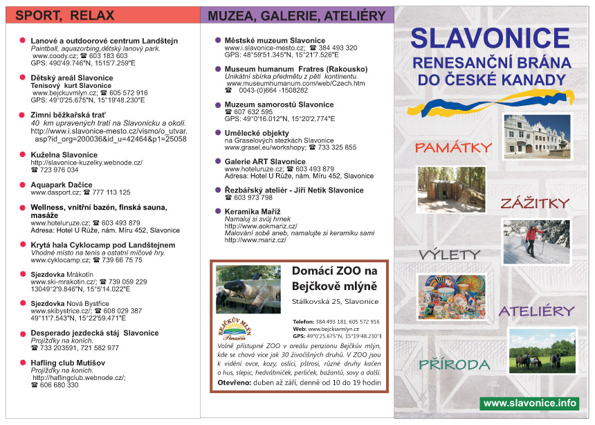 Památky, výlety, zážitky, ateliéry a příroda. To vše najdete na letáku, který připravilo Městské kulturní středisko ve spolupráci s podnikateli v cestovním ruchu na sezónu 2012.